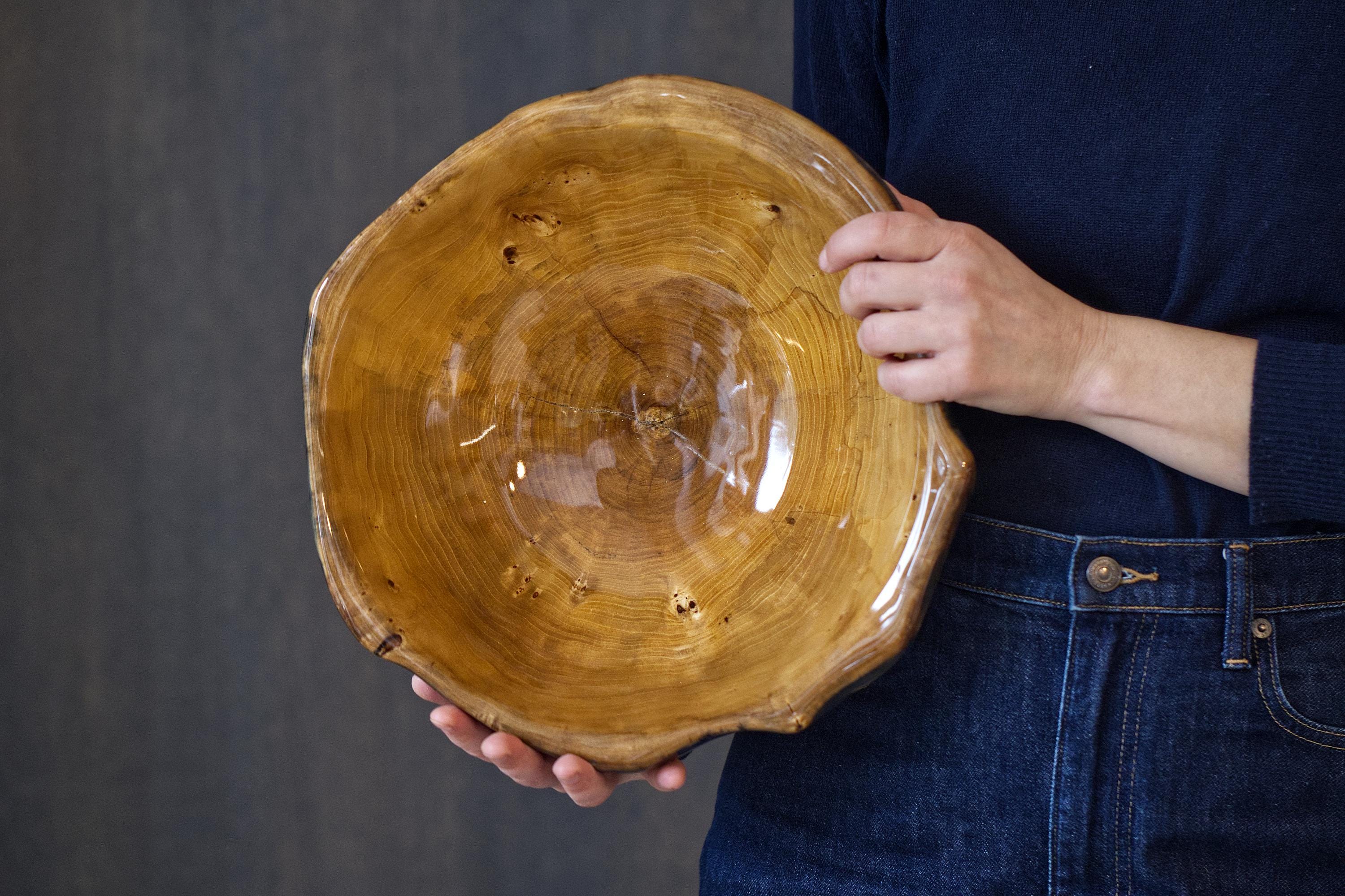 Add a touch of natural beauty to your home with this handmade elm wood wood bowl, perfect for serving salads, holding fresh fruit, or acting as a rustic centerpiece. This stunning piece is carefully hand-turned from solid elm wood, revealing the intricate, organic grain patterns that make each bowl one of a kind.
