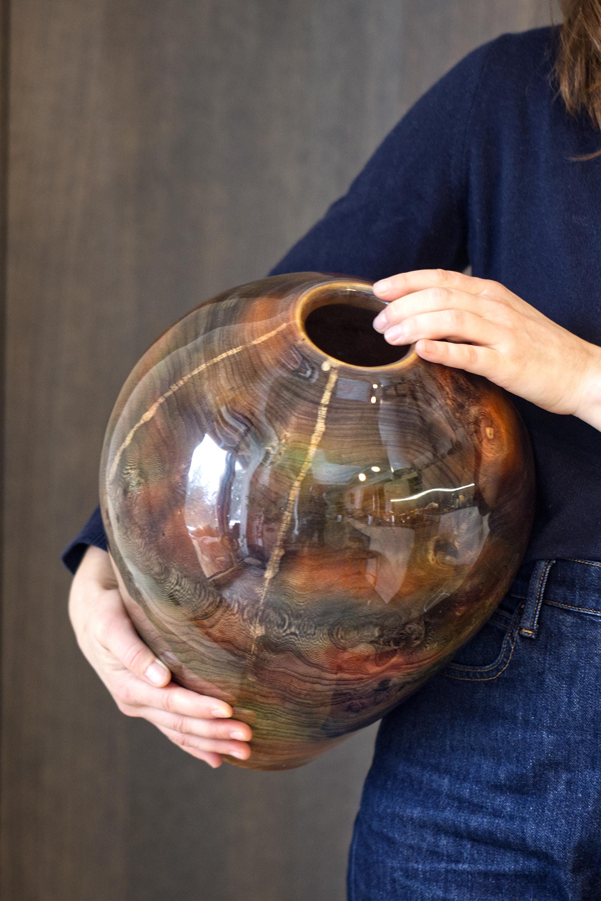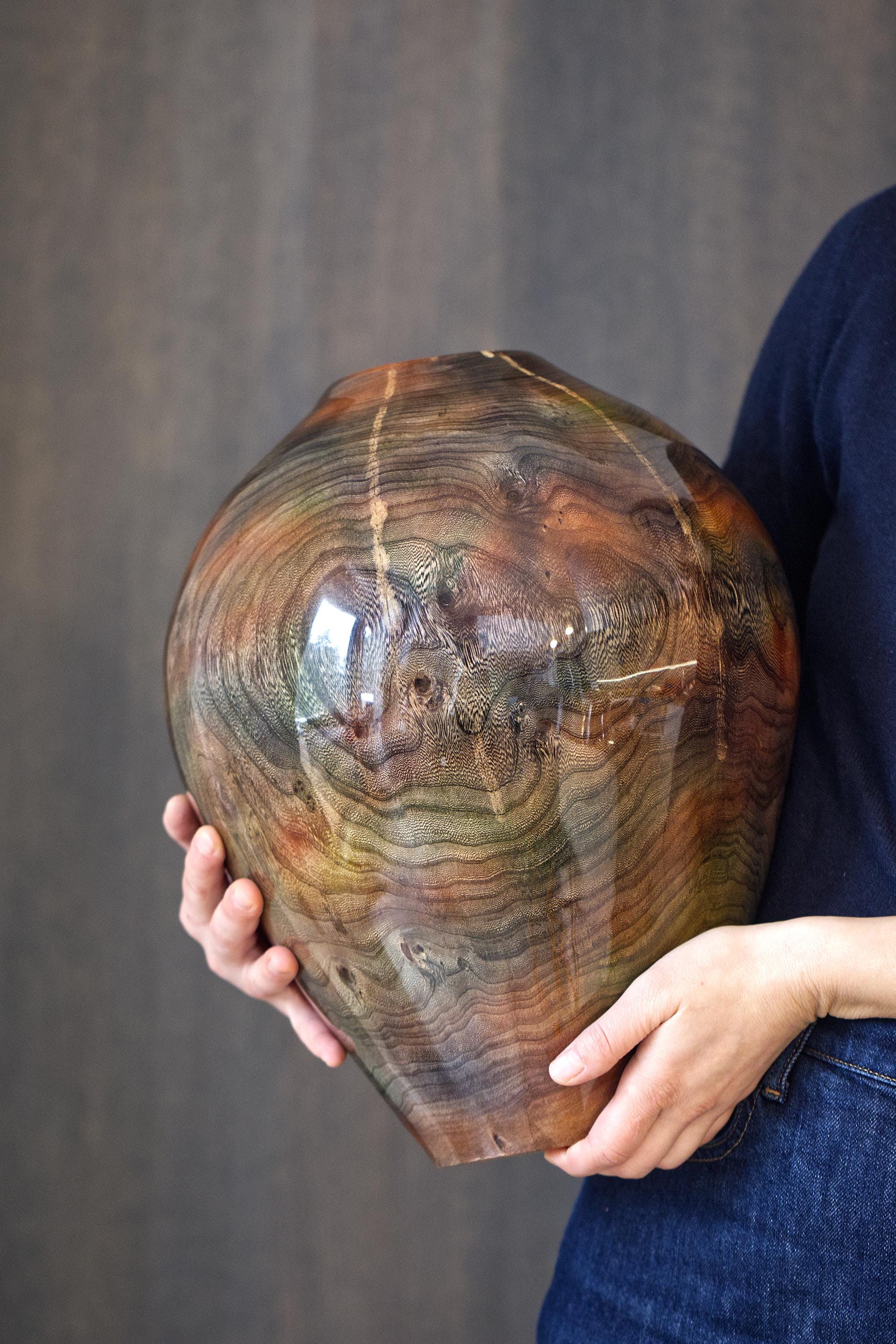 Experience the perfect fusion of nature and sophistication with this luxury handmade elm wood vase. Expertly hand-turned from solid elm wood, this vase showcases the natural beauty of the wood’s grain, enhanced by a high-gloss resin finish that creates a stunning, mirror-like sheen.