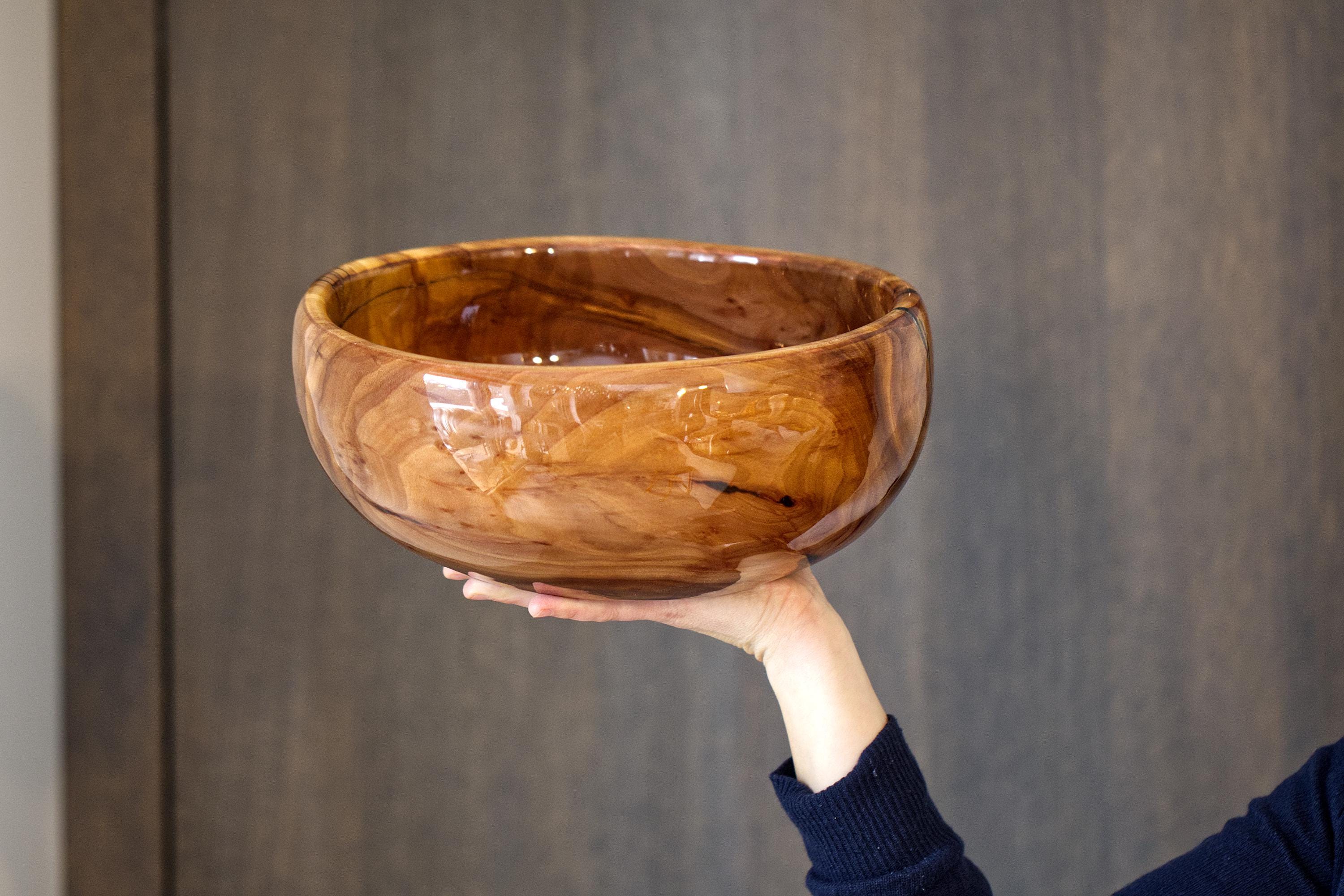 Add a touch of natural beauty to your home with this handmade apple wood wood bowl, perfect for serving salads, holding fresh fruit, or acting as a rustic centerpiece. This stunning piece is carefully hand-turned from solid apple wood, revealing the intricate, organic grain patterns that make each bowl one of a kind.